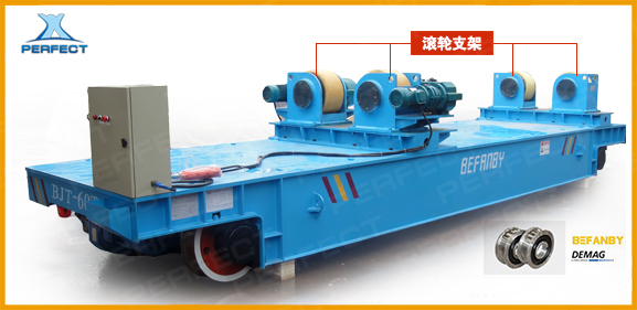 是一種特制的軌道運(yùn)輸工具車,主要應(yīng)用于焊接、探傷、生產(chǎn)線等工況,該車型分為兩種,一種在臺(tái)面上加裝特制的滾輪支架,用來(lái)調(diào)節(jié)所運(yùn)載物料角度,以方便對(duì)接或切割。 另一種是臺(tái)面上平鋪滾輪支架的電動(dòng)平車,臺(tái)面均勻鋪設(shè)一層滾輪,由電機(jī)鏈條帶動(dòng)滾輪傳動(dòng),運(yùn)載物料。方便將物料從電動(dòng)平車臺(tái)面?zhèn)魉偷綄?duì)接的工位上。