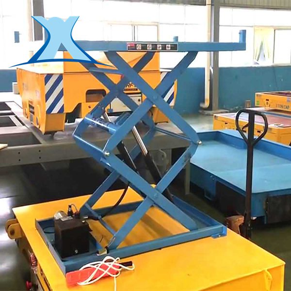 液壓升降軌道平車是一種多功能起重裝卸機械設(shè)備,通??梢栽谠O(shè)定的高度范圍內(nèi) 升降,滿足作業(yè)時高度的不同要求,且平臺可以是整個臺面進行升降,也可以是另設(shè)工作平臺。升降時也可以實現(xiàn)固定高度自動停止,電動平車常用的升降平臺主要有以下兩種: 一種是垂直升降平臺,是由液壓系統(tǒng)提供動力進行升降。此系列升降軌道車通常配套一整套液壓系統(tǒng),用來放置承載物件的平臺,就構(gòu)成一套升降系統(tǒng)。根據(jù)承載噸位以及升降高度不同,配置液壓缸的數(shù)量和規(guī)格也有所區(qū)別。 一種是剪叉式升降平臺,也由液壓系統(tǒng)提供動力。此系列承重結(jié)構(gòu)是剪叉式,常