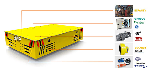BWP:無軌電動平板車是一種以蓄電池作為電源,電機(jī)減速機(jī)作為驅(qū)動系統(tǒng),實心包膠車輪直接在地面行走的轉(zhuǎn)運(yùn)車,其運(yùn)行不受限制,進(jìn)口的車輪保證地面不受損壞,360°原地轉(zhuǎn)彎適應(yīng)更狹小的空間運(yùn)行,360度無死角防護(hù)、遇人自動停止等功能,保證了運(yùn)行過程中的阻礙問題。觸摸屏、搖桿操作等設(shè)計使操作更加人性化。